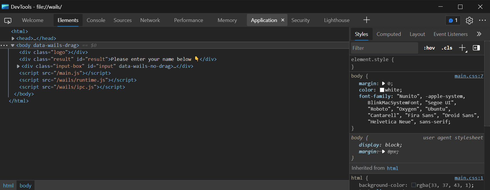 The Application API famously has only 1 function: Run() which takes a heap of options which govern how the application will work. Whilst this is very simple to use, it is also very limiting. It is a "declarative" approach which hides a lot of the underlying complexity. For instance, there is no handle to the main window, so you can't interact with it directly. For that, you need to use the Runtime API. This is a problem when you start to want to do more complex things like create multiple windows.